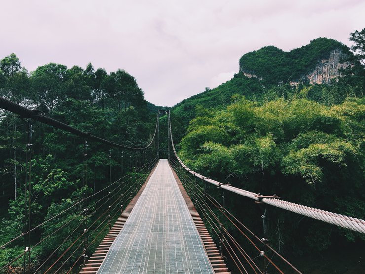 The bridge is 120 meters long and can only accommodate a limited number of tourists due to the occasional use of motorcycles by local residents. (A sign on the bridge warns tourists about the weight limit.)