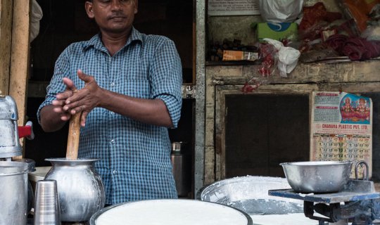 I saw a sign with a picture of a glass of milk for 10 rupees. I don't know what the writing said, but I ran to buy it and try it.