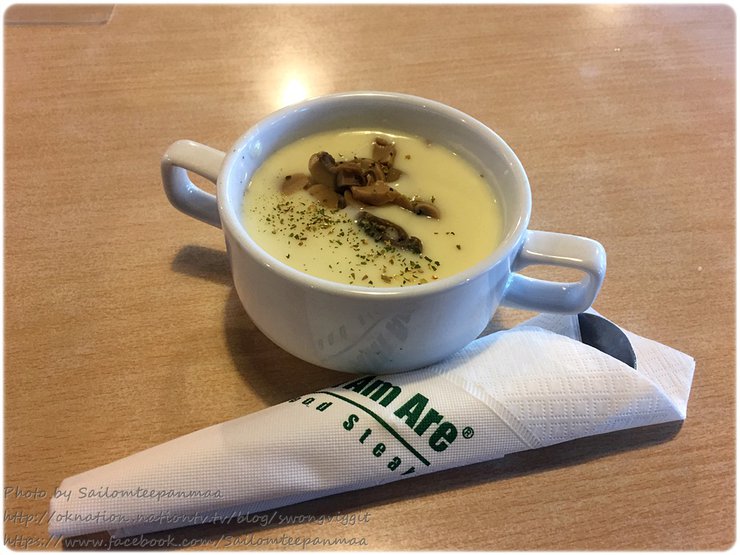Although Eat am is a Thai-style steakhouse that is not particularly large, it serves food in a clear and concise manner. The first course is a mushroom soup to warm the customer's stomach.